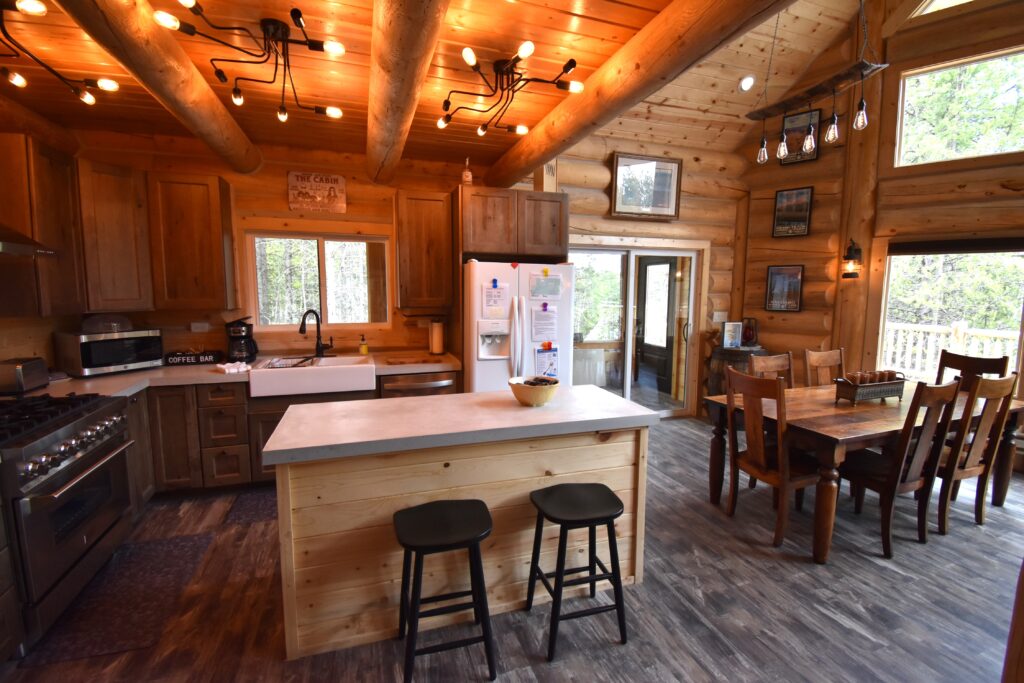 The Rocking G is a brand new cabin just completed in November of 2023. Located near Island Park Reservoir guests have access to snowmobiling and ATV trails right from the cabin. This comfortable 3 bedroom (plus loft) 2 1/2 bathroom cabin sleeps up to 12 and has all the modern appliances, utilities and features you could ask for.